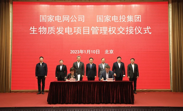 2023年1月10日,国家电网与国家电投生物质发电项目管理权交接仪式在北京举行,国资委党委委员、副主任翁杰明出席仪式并讲话。