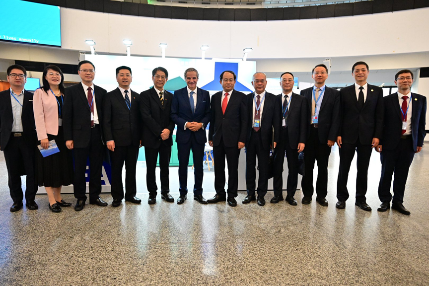 大会期间,国际原子能机构总干事格罗西、中国国家原子能机构主任单忠德、中国常驻国际原子能机构代表李松到由中国原子能机构(CAEA)主办、国家电投集团、上海核工院承办的中国核能发展专题展览“核美家园:中国核能发展成就”展台参观,卢洪早陪同参观。