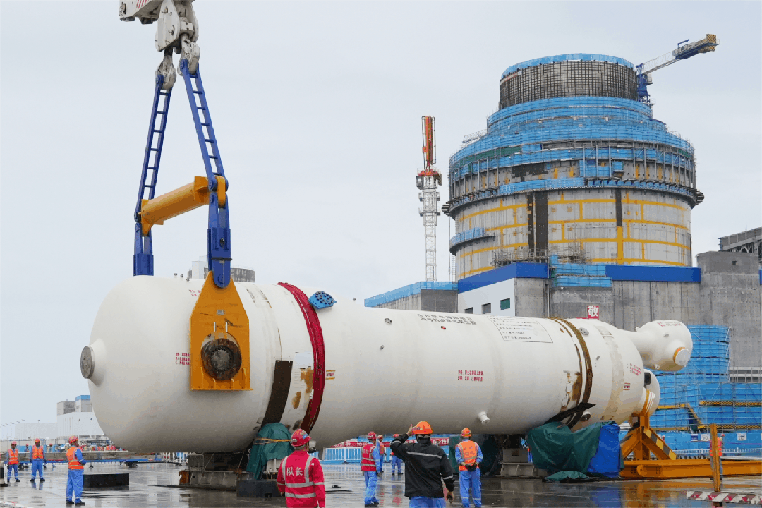 8月13日,国家电投集团山东核电海阳核电4号机组核岛首台蒸汽发生器顺利吊装就位,为核岛反应堆主回路的贯通和反应堆厂房的封顶奠定了坚实的基础。