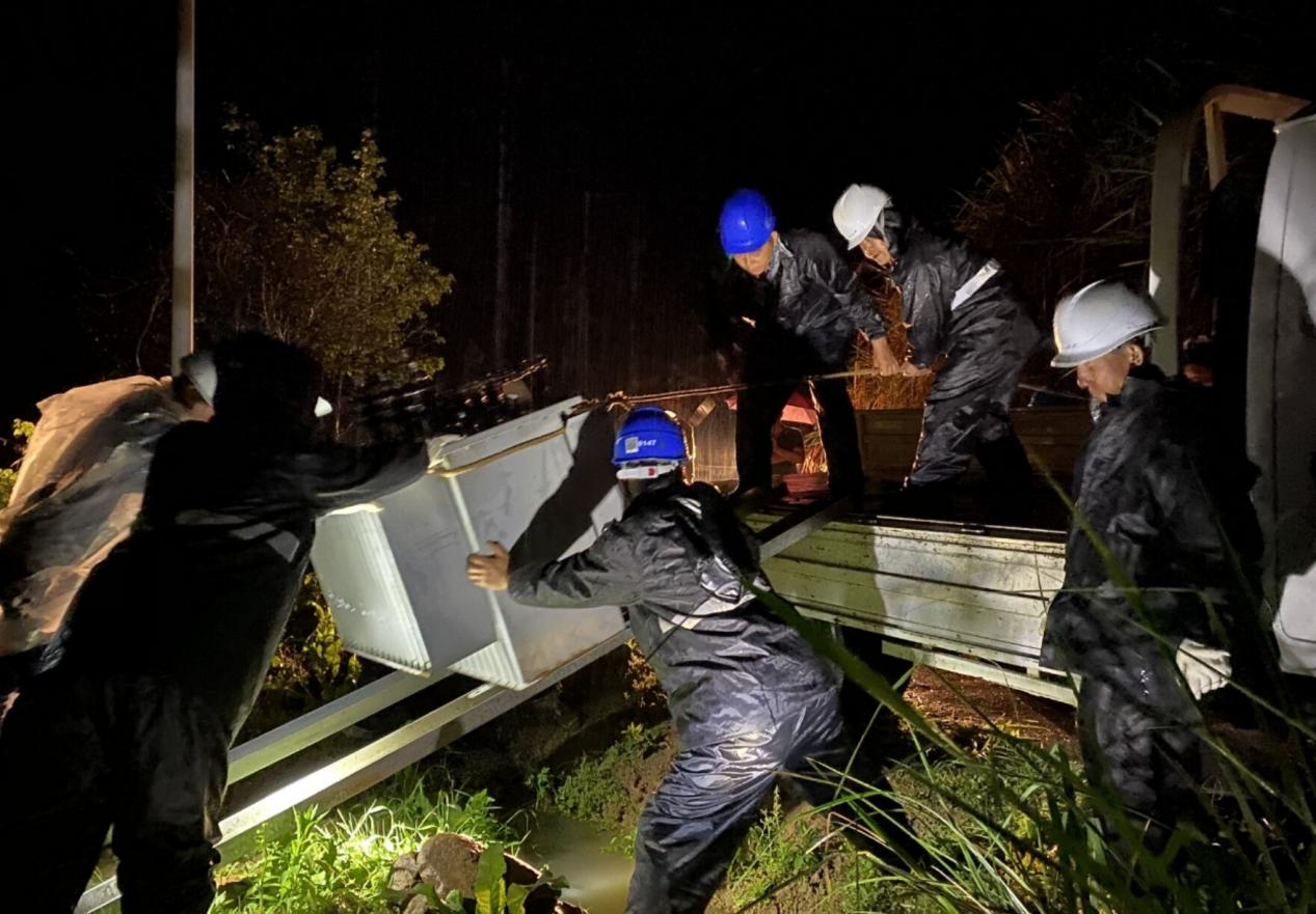 到达现场后,杜建强凭借丰富经验,用双手清理顽固石块,任凭雨水打湿衣衫、泥浆沾满双手,始终专注如一。入党积极分子唐林扛着沙袋往返奔跑,脚步坚定有力,汗水混着雨水顺着脸颊不住流淌。电气专工杨鹏一边指挥现场作业,一边细致检查线路情况,严防意外发生。运维员何刚刚、刘生鑫则埋头清理沟内淤积的泥土。大伙儿齐心协力,配合默契,争分夺秒与汛情赛跑。