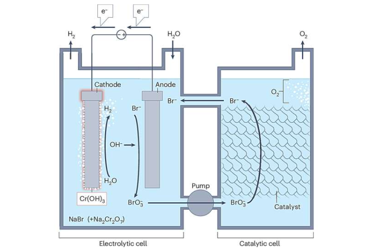 溴化物/溴酸盐解耦水电解过程。图片来源:《自然评论:清洁技术》(2025)